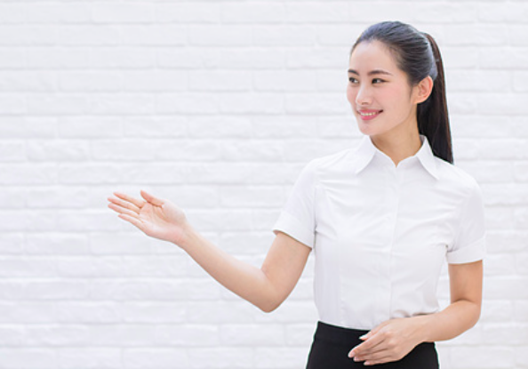 做「請」的手勢時,要在標準站姿的基礎上,將手優雅地劃向指示方向。這時應五指併攏,掌心向上,同時,接待人員要用親切柔和的目光注視顧客,並說些「請,please」的話。
